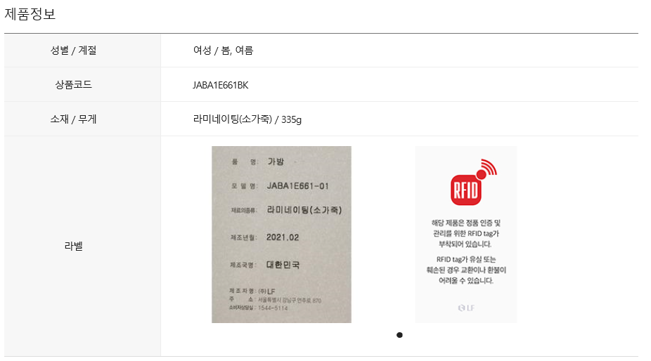 제품 스펙 : 내부포켓 (1)