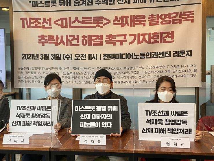 한빛미디어노동인권센터는 31일 한빛센터 라운지에서 기자회견을 열고, 2년 전 사고가 발생했지만 외주업체와 TV조선이 아직까지도 책임을 인정하지 않는다고 설명했다.