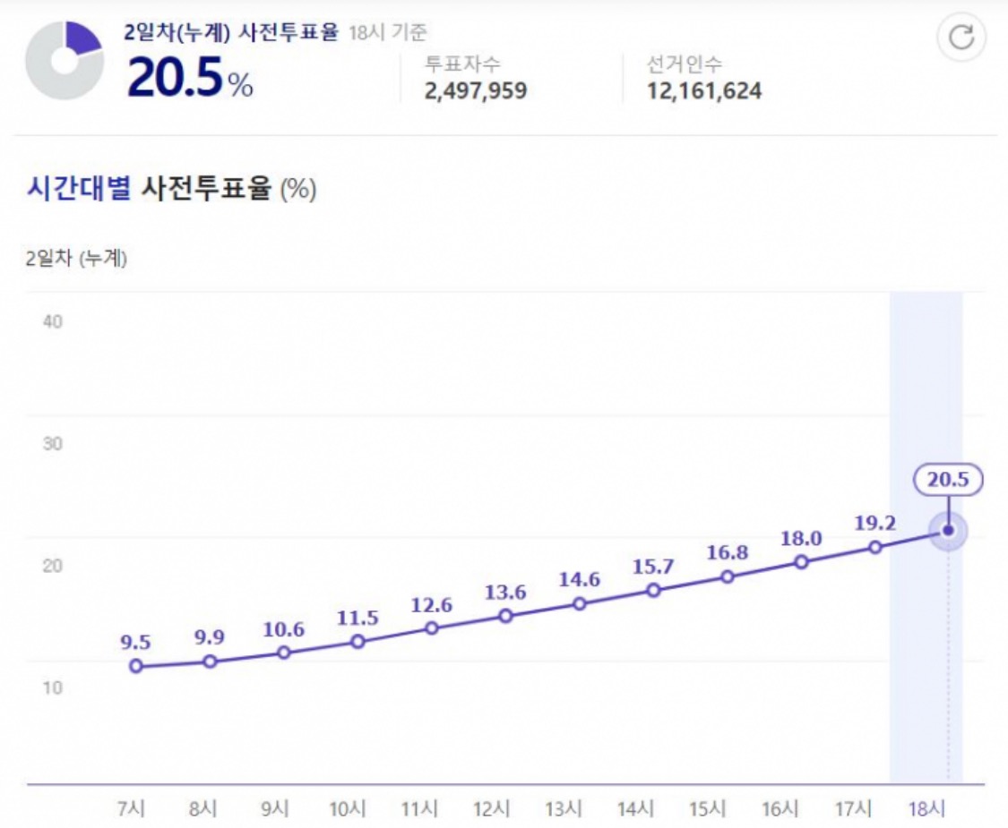 (지방선거 사전투표율 20.14%도 뛰어넘었다.)